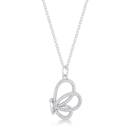Whimsical Rhodium CZ Butterfly Pendant and Necklace